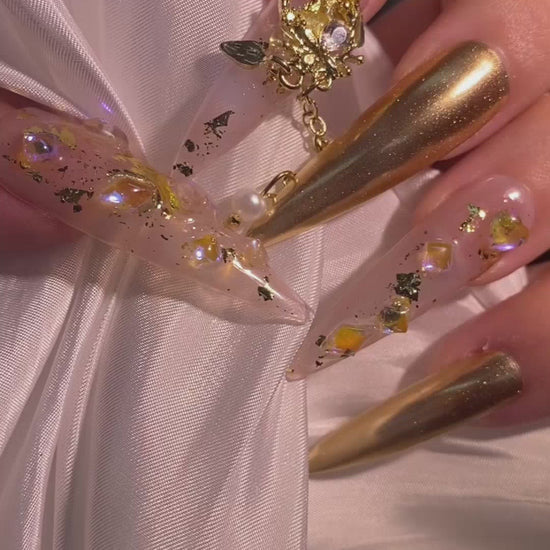 Luxurious Gold Art Design press-on nails 10pcs set 100% handmade
